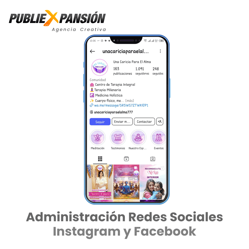 Una Caricia para el Alma es un centro holístico donde se ofrecen servicios enfocados a la sanación integral. Para ellas desarrollamos contenido digital para promocionar sus productos y servicios en las redes sociales e internet. También creamos su página web.